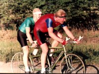 Pictured here on the back of my tandem and preparing to ride a 2up is a long time fixed rider and good friend, click here to read Dave Fearon's story.